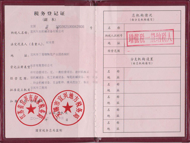 Tax registration certificate
